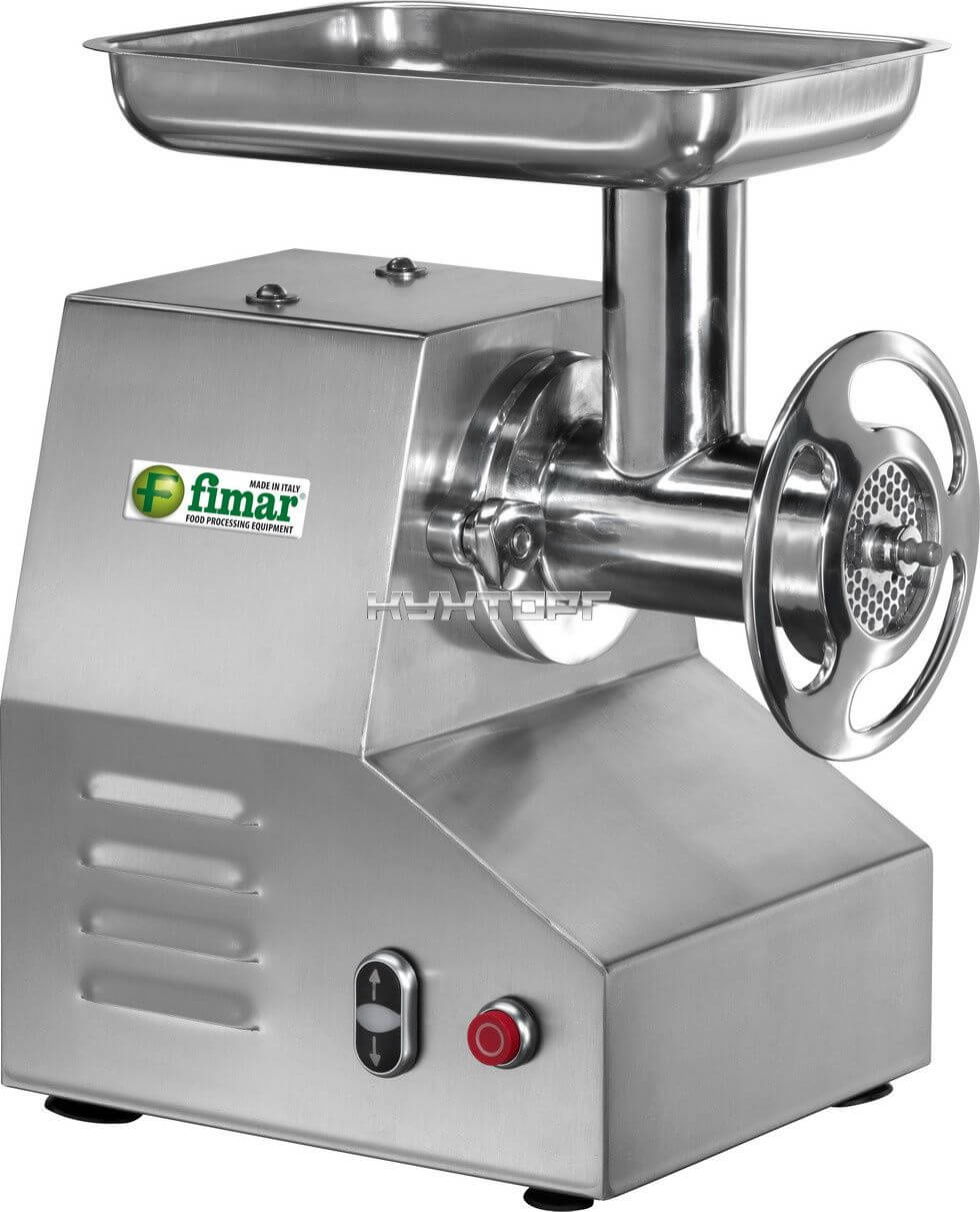 Мясорубка FIMAR 32/TN предназначена для измельчения мяса и рыбы на фарш, повторного измельчения котлетной массы и набивки колбас на предприятиях общественного питания и торговли. Модель оснащена зубчатым редуктором в масляной ванне, реверсом и предохранительными микровыключателями. Внутренние детали съемные, что удобно для их мытья в посудомоечной машине. Корпус, бункер, решетка, извлекаемый режущий узел и самозатачивающийся нож выполнены из нержавеющей стали.