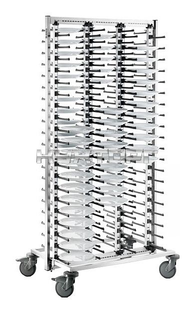 Тележка Blanco GASTRO 120 предназначена для размещения и удобного перемещения тарелок на предприятиях общественного питания для обслуживания банкетов и мероприятий. Модель оснащена бесступенчатой настройкой для тарелок размером до 300 мм и поворачивающимися роликами для легкого передвижения, 2 из которых имеют тормоза для фиксации тележки.