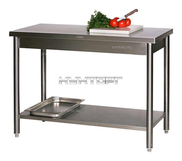Производственный разделочный стол ТММ СРОП-1/950/800 предназначен для обработки ингредиентов для приготовления блюд, а также в качестве дополнительного места для установки кухонных приборов на предприятиях общественного питания и торговли. Столешница выполнена из нержавеющей стали AISI 430, сплошная полка - из оцинкованной стали, каркас - из оцинкованного уголка 40х40 мм.