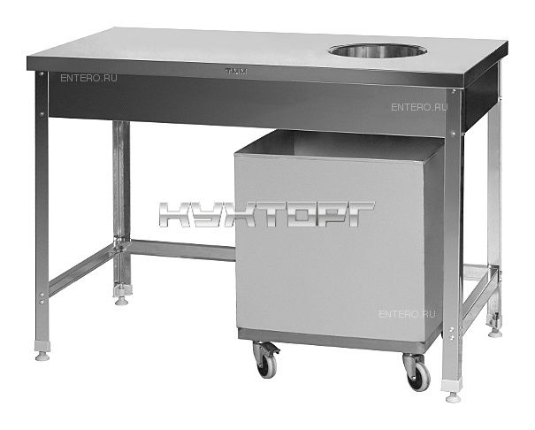 Производственный разделочный стол ТММ ССО-1/1000/600 предназначен для сбора пищевых отходов на предприятиях общественного питания и торговли. Столешница выполнена из нержавеющей стали AISI 430, обвязка - из оцинкованной стали, ножки - из оцинкованного уголка 40х40 мм.