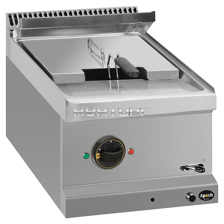 Фритюрница Apach APFE-47/2P 700-й серии предназначена для приготовления блюд в масле на предприятиях общественного питания и торговли. Модель оснащена электромеханической панелью управления. Во фритюрнице предусмотрена холодная зона, что позволяет увеличить время использования масла. Корпус, ванна, рабочая поверхность, панель управления и вытяжная решетка выполнены из нержавеющей стали AISI 304, боковые и задняя панели - из нержавеющей стали AISI 430, корзина - из хромированной стальной проволоки, нагревательный элемент, фильтр и крышка корзины - из нержавеющей стали.