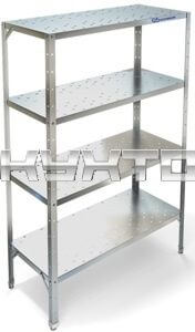 полки - перфорированные; 4 полки; каркас - оцинкованная сталь; полки - нерж. сталь; ширина - 1000 мм; глубина - 400 мм; |