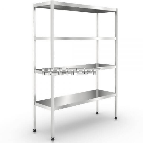 Кухонный стеллаж ТТМ ST-080/4 бизнес-класса предназначен для хранения кухонного инвентаря и сухих пищевых продуктов на предприятиях общественного питания и торговли. Разборная модель оснащена регулируемыми опорами и сплошными полками, усиленными дополнительными ребрами жесткости. Стойки выполнены из нержавеющей трубы квадратного сечения 30х30 мм, полки - из нержавеющей стали AISI 430.
