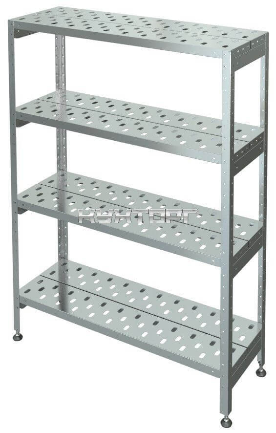 полки - перфорированные; 4 полки; макс. загрузка на полку - 72 кг; каркас - оцинкованная сталь; полки - нерж. сталь; |