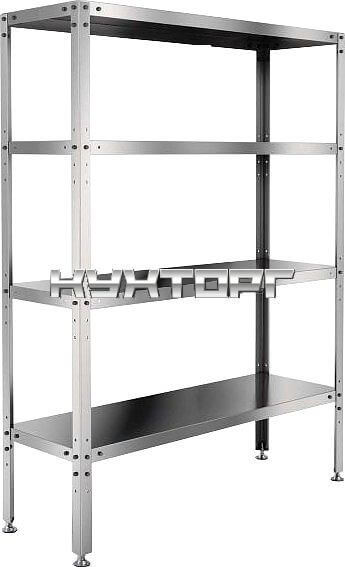 полки - сплошные; 4 полки; от 40 до 100 кг; каркас - оцинкованная сталь; полки - нерж. сталь; ширина - 1200 мм; глубина |