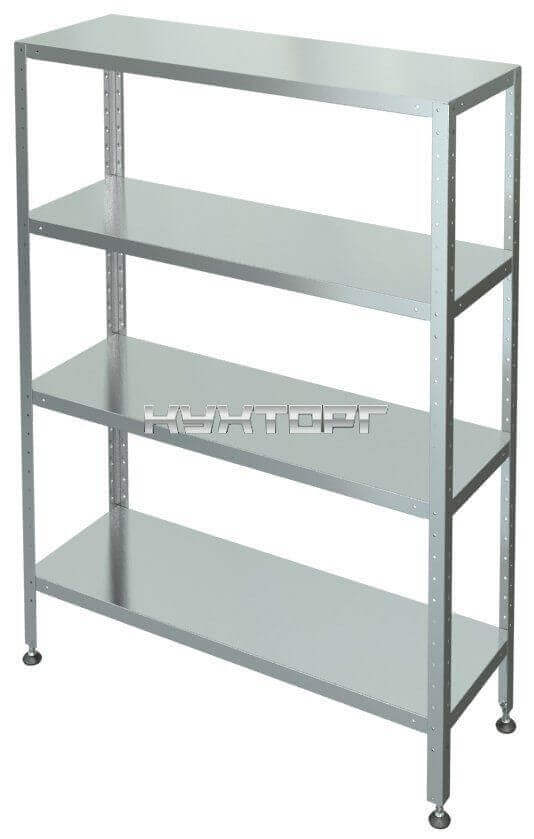полки - сплошные; 4 полки; макс. загрузка на полку - 72 кг; каркас - оцинкованная сталь; полки - нерж. сталь; ширина - |