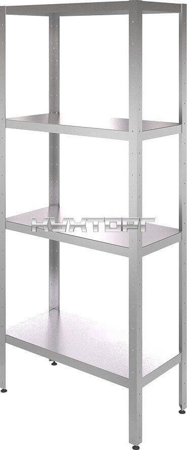 полки - перфорированные; 4 полки; каркас - нерж. сталь; полки - нерж. сталь; ширина - 1300 мм; глубина - 500 мм; высота |