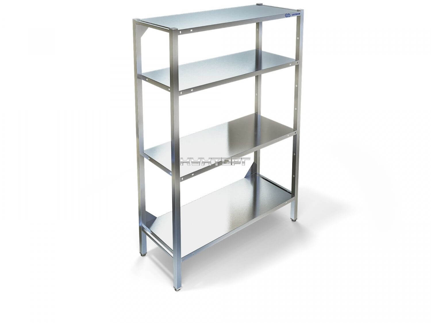 Стеллаж кухонный, полки сплошные нерж.сталь AISI 430 0,8 мм, каркас уголок 40х40 нерж.сталь AISI 430 2,0 ммПеред оплатой необходимо получить подтверждение о наличии товара на складе и согласовать сроки поставки, если товар заказной.