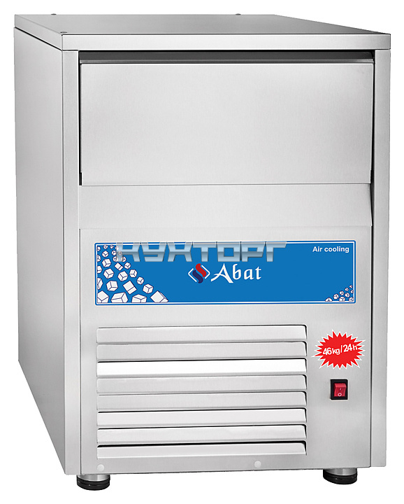 кубиковый лед; 46 кг/сутки; требуется подвод и отвод воды; с бункером; воздушное охлаждение; 220 В |