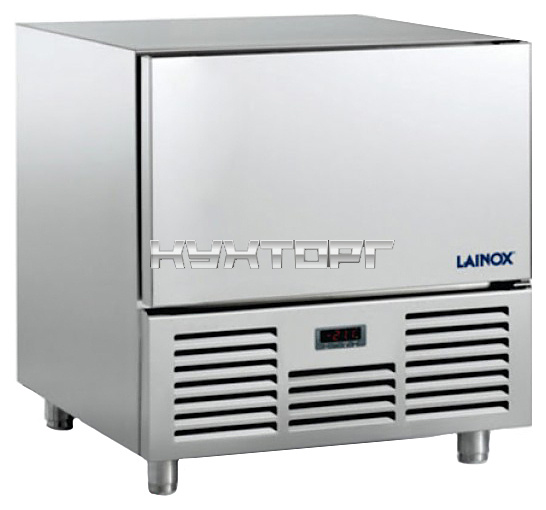 Шкаф шоковой заморозки Lainox RDM050E используется на предприятиях общественного питания, а также в продовольственных магазинах, супермаркетах и на пищевом производстве для быстрого охлаждения и заморозки большого объема продуктов питания с сохранением их первоначальных свойств. Резкое изменение температуры препятствует росту бактерий без потери влажности пищи. Модель оснащена электромеханическим управлением, встроенным холодильным агрегатом, вентилятором с косвенным обдувом, съемными направляющими и дверцей с эргономичной ручкой и магнитными прокладками по периметру. Корпус изготовлен из нержавеющей стали AISI 304 18/10 с пенополиуретановой теплоизоляцией без ГХФУ плотностью 42 кг/м3,, испаритель - из меди и алюминия.