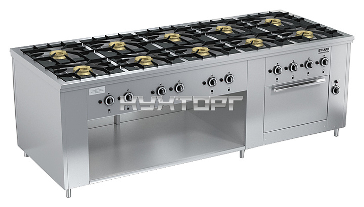 Газовая плита Вулкан ПРГ-IIA-10 ДШ Maxi предназначена для приготовления первых, вторых и третьих блюд в наплитной посуде, выпечки хлебобулочных и кондитерских изделий на предприятиях общественного питания и торговли. Модель оснащена газ-контролем, пьезорозжигом и запальной горелкой. Корпус выполнен из нержавеющей стали, решетка - из чугуна.