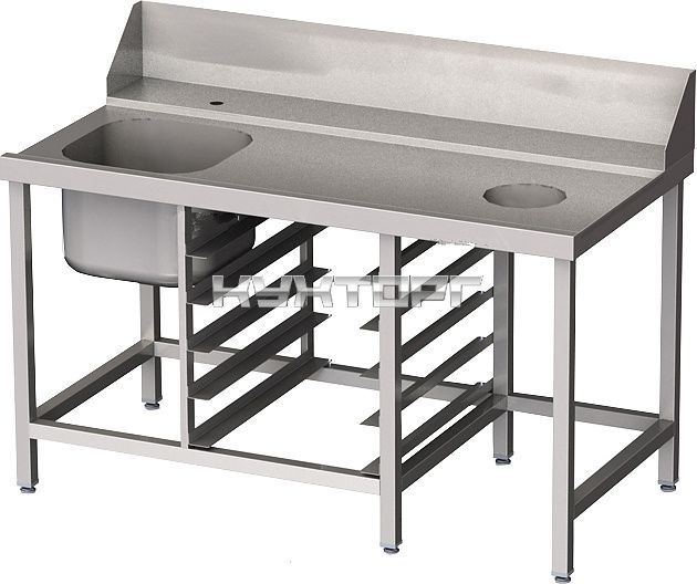 Входной правый стол Vortmax СВ15075ВХП используется совместно с купольными посудомоечными машинами Eframo и Fagor для мойки кассет, приборов, посуды, кухонных принадлежностей и продуктов, раскатки теста и обработки ингредиентов для приготовления блюд на предприятиях общественного питания и торговли. Модель оснащена обвязкой с 3-х сторон и регулируемыми по высоте ножками. Каркас выполнен из трубы 40х40 мм, столешница - из нержавеющей стали AISI 304 толщиной 1 мм.