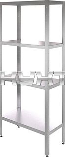полки - сплошные; 4 полки; каркас - нерж. сталь; полки - нерж. сталь; ширина - 800 мм; глубина - 600 мм; высота - 1800 |