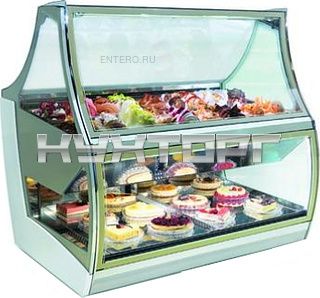 - 2 зоны выкладки в верхней секции с возможностью установки в них разных температурных режимов (положительная и отрицательная температуры)