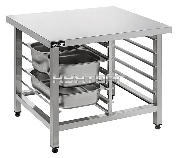 Подставка Кобор ПП-76/88 изготовлена из высококачественной стали aisi 430 с усилением ЛДСП. Изделие имеет направляющие, позволяющие разместить в них гастроемкости либо противни, в зависимости от модели подставки. Каркас произведен из нержавеющей квадратной трубы 40х40 мм. Ножки регулируются по высоте, что позволяет исправить неровности пола. Подходит для пароконвектомата GARBIN модель 44.