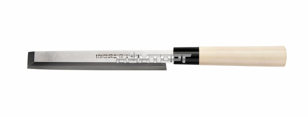 Профессиональный нож, предназначен для блюд японской кухни. Имеет одностороннюю заточку. Максимально острый благодаря малому углу заточки. Классическая съемная рукоять из шлифованной магнолии обеспечивает максимальный комфорт в работе. Клинок выполнен из нержавеющей стали 3Cr13 с твердостью 53-55 HRC.