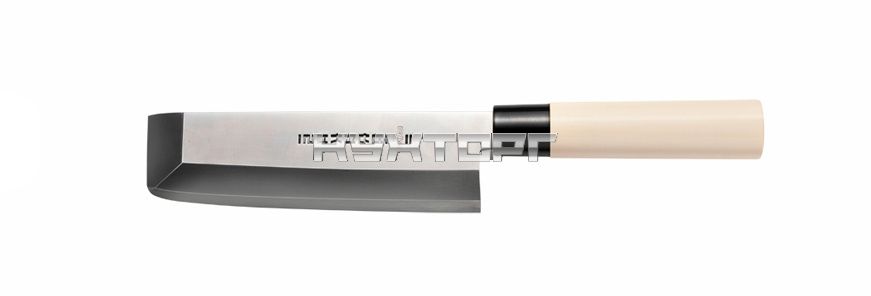 Профессиональный нож, предназначен для блюд японской кухни. Имеет одностороннюю заточку. Максимально острый благодаря малому углу заточки. Классическая съемная рукоять из шлифованной магнолии обеспечивает максимальный комфорт в работе. Клинок выполнен из нержавеющей стали 3Cr13 с твердостью 53-55 HRC.