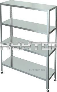 полки - сплошные; 4 полки; каркас - оцинкованная сталь; полки - нерж. сталь; ширина - 400 мм; глубина - 400 мм; высота - |