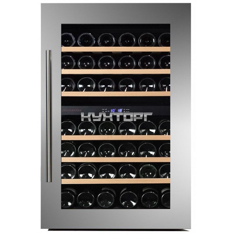 Винный шкаф Dunavox DAB-42.117DSS серии Built-in создает оптимальные условия для сохранения всех вкусовых свойств разливного вина. Модель оснащена сенсорной панелью управления и LED-подсветкой синего цвета в каждой зоне. Корпус выполнен из окрашенного металла, дверь - из полированной стальной рамы и тонированного стекла с защитой от ультрафиолетовых лучей, выдвижные полки - из нелакированного бука, накладная ручка двери - из нержавеющей стали.