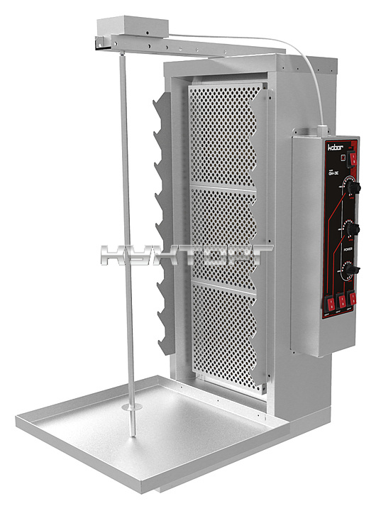 Гриль для шаурмы Кобор GM-3E используется на предприятиях общественного питания и торговли для обжарки большого количества различных видов мяса и птицы для приготовления начинки из рубленного мяса для шаурмы и других блюд. Боковые держатели позволяют использовать шампура для приготовления шашлыка и кебабов. Модель оснащена 3 ТЭНами и 3 уровнями нагрева. Корпус выполнен из пищевой нержавеющей стали.