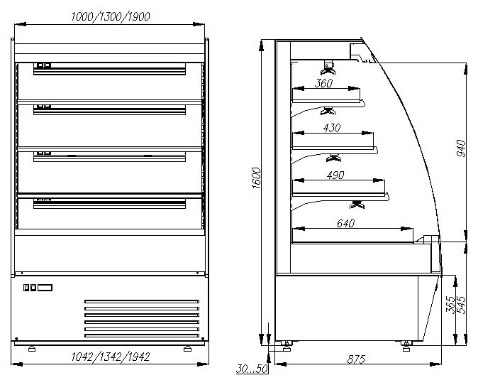 - Глубина полок: 360 / 430 / 490 мм