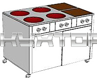 Мобильная комбинированная плита Heidebrenner ETK-I-FW 742628 предназначена для приготовления первых, вторых и третьих блюд в наплитной посуде на предприятиях общественного питания и торговли. Модель оснащена 2 дверцами-купе, 4 конфорками WOK и 2 индукционными конфорками, плавной регулировкой энергии, быстрым нагревом и автоматическим определением посуды, при котором при отсутствии посуды конфорка автоматически отключается.