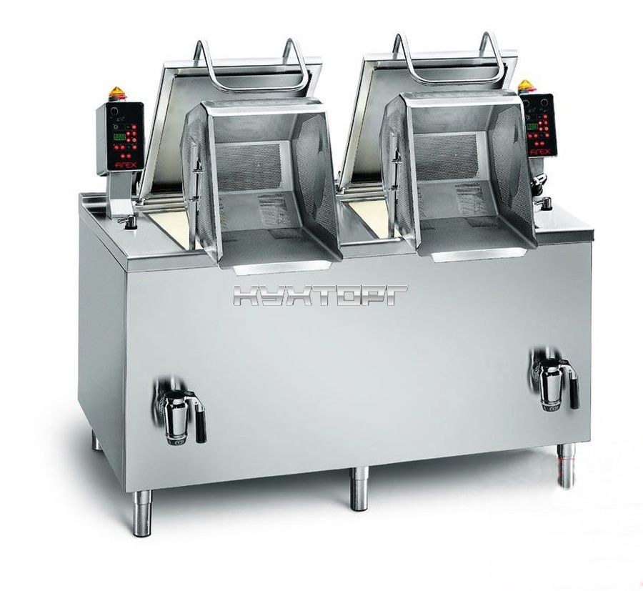 Внутренняя поверхность и перфорированные корзины выполнены из качественной нержавеющей стали AISI 316, несущая конструкция, крышка и внешний кожух - из нержавеющей стали AISI 304, фронтальный сливной кран - из хромированной латуни.