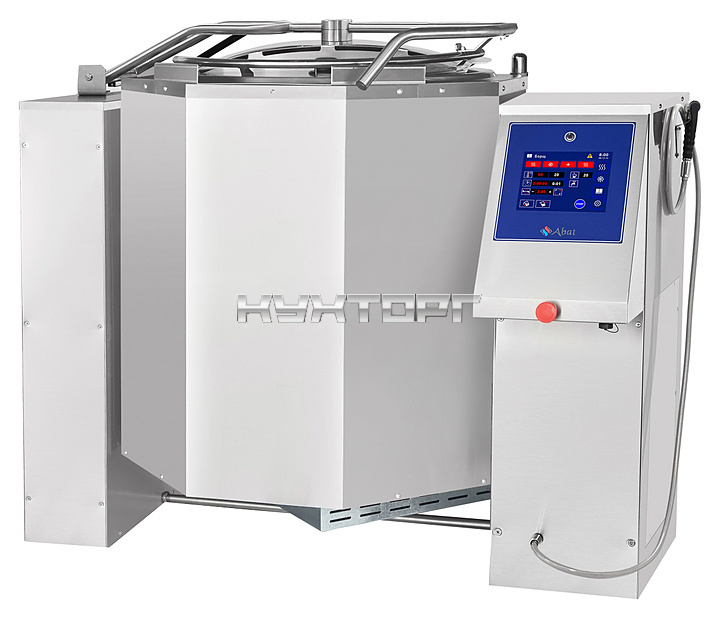 Варочный котел Abat КПЭМ-350-ОМП с функциями опрокидывания, перемешивания и охлаждения предназначен для приготовления вторых и третьих блюд, бульонов, соусов и десертов, а также для кипячения воды на предприятиях пищевой промышленности и общественного питания. Модель оснащена панелью управления с электронным TFT-экраном и пультом программного управления.