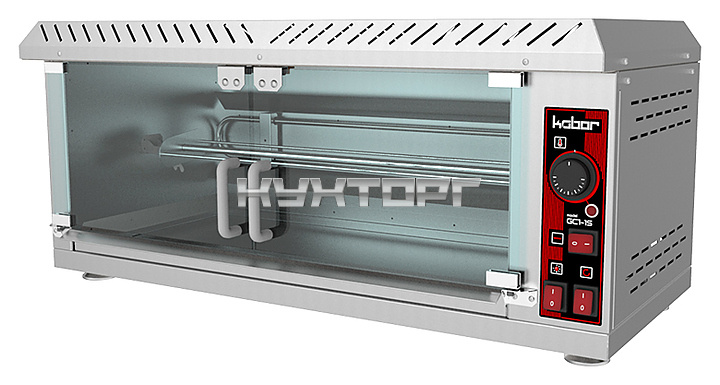 Гриль для кур Кобор GC1-1S используется на предприятиях общественного питания и торговли для жарки целых тушек цыплят, грудок, окорочков и других продуктов. Модель оснащена стеклянными дверцами, внутренней подсветкой, съемным поддоном и регулируемыми по высоте ножками. Корпус выполнен полностью из нержавеющей стали.