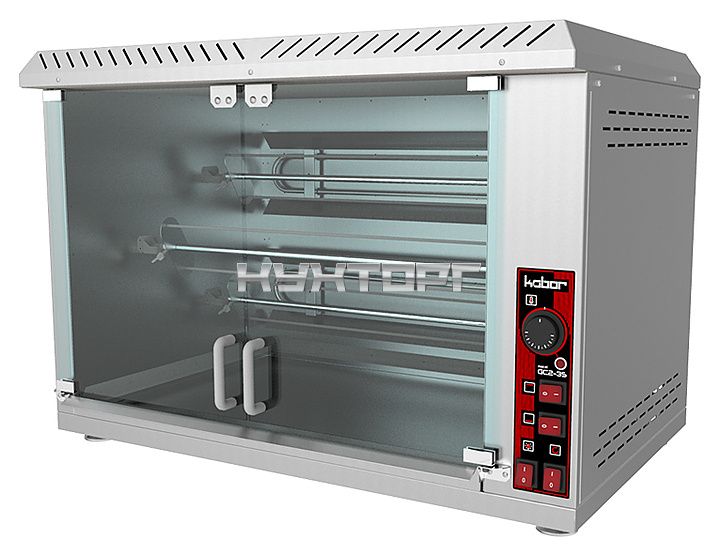 Гриль для кур Кобор GC2-5S используется на предприятиях общественного питания и торговли для жарки целых тушек цыплят, грудок, окорочков и других продуктов. Модель оснащена стеклянными дверцами, внутренней подсветкой, съемным поддоном и регулируемыми по высоте ножками. Корпус выполнен полностью из нержавеющей стали.