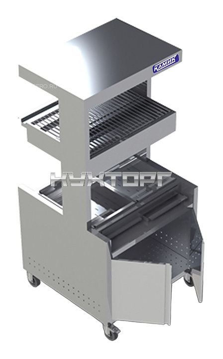 Мармит КАМИК МФ-324909 используется на предприятиях общественного питания и торговли для кратковременного хранения, демонстрации, поддержания в теплом состоянии и последующей фасовки готового картофеля фри. Модель оснащена распашными дверями, 2 тепловыми полками и подсветкой с галогенными лампами. Лотки для картофеля выполнены из нержавеющей стали AISI 430 толщиной 1,5 мм, корпус и остальные части изделия - из нержавеющей стали AISI 430 толщиной 1 мм.