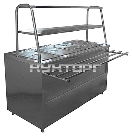 Мармит Пищевые Технологии Лира-Профи МЭП-2Б/ЛП-1500 предназначен для кратковременного сохранения в горячем состоянии вторых блюд, соусов и гарниров в составе линий раздач или самостоятельно на предприятиях общественного питания и торговли. Модель оснащена 2 полками, направляющими для подносов и регулируемыми по высоте ножками. Корпус выполнен из нержавеющей стали.