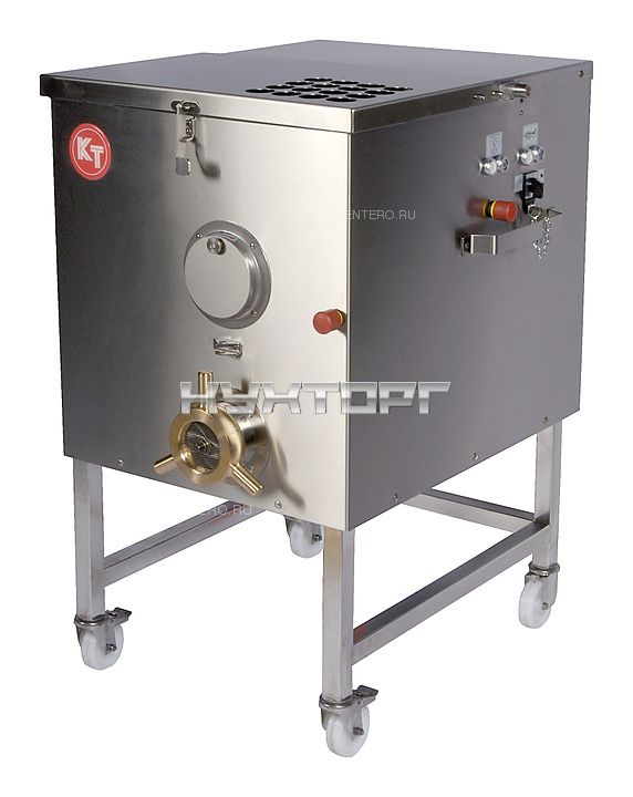 Мясорубка Koneteollisuus Oy (KT) LM-98/А предназначена для измельчения мяса и рыбы на фарш, повторного измельчения котлетной массы и набивки колбас на предприятиях пищевой промышленности и торговли. Модель оснащена 2 двигателями: для измельчения и для смешивания, равномерным ходом и низким уровнем шума при работе. Корпус выполнен из чугуна, шнек - из алюминия.