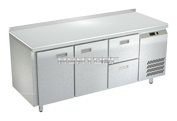 от -2 до 10 °С; полимерное покрытие; гастронормированный; 2 двери; 2 ящика; с бортом; 1835 мм; 600 мм |