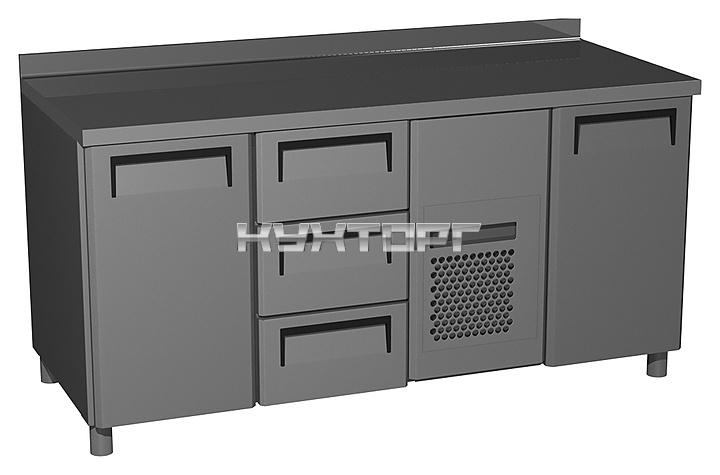 от 0 до 7 °С; нерж. сталь; 2 двери; 3 ящика; с бортом; 1670 мм; 700 мм |