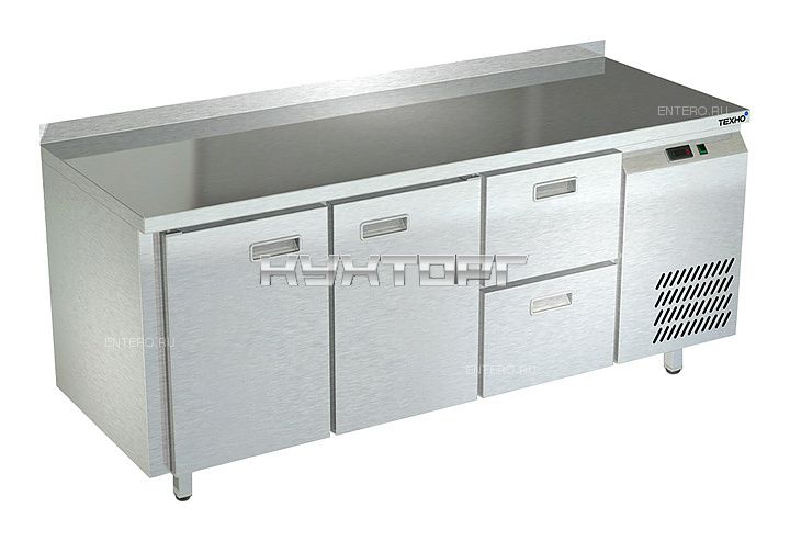 от -2 до 10 °С; нерж. сталь; гастронормированный; 2 двери; 2 ящика; с бортом; 1835 мм; 700 мм |