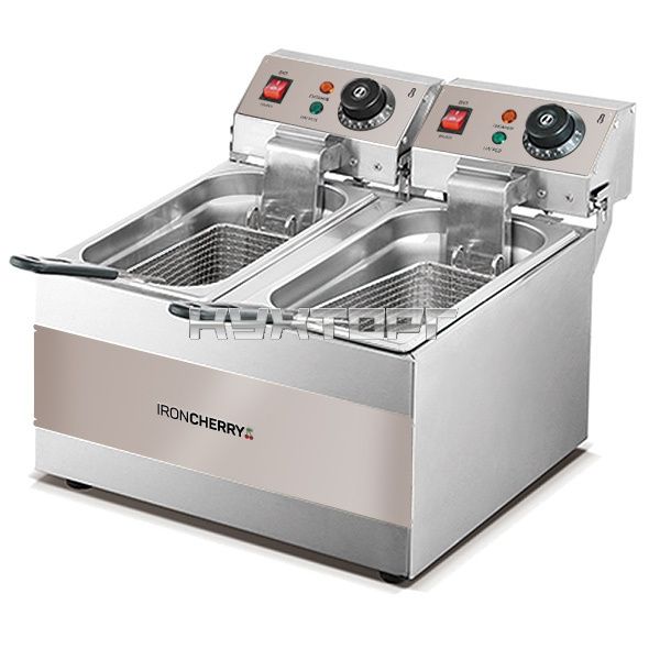 Профессиональная фритюрница IRON CHERRY Fryer 4-2 - отличный помощник в приготовлении хрустящего картофеля- "фри", наггетсов, пончиков, чебуреков и другой жареной выпечки. Также оборудование позволяет значительно расширить ассортимент блюд в кафе и ресторанах. Возможно обжаривание различных видов мяса, рыбы, овощей и морепродуктов. Небольшие габариты позволяют удобно встраивать его в кухонную зону. Агрегат и комплектующие сделан из нержавеющей стали. В комплект включена шумовка.