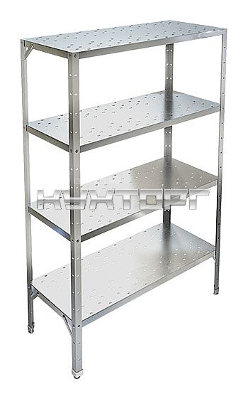 полки - перфорированные; 4 полки; каркас - нерж. сталь; полки - нерж. сталь; ширина - 1200 мм; глубина - 600 мм; высота |
