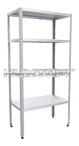 полки - сплошные; 4 полки; макс. загрузка на полку - 50 кг; каркас - оцинкованная сталь; полки - нерж. сталь; ширина - |