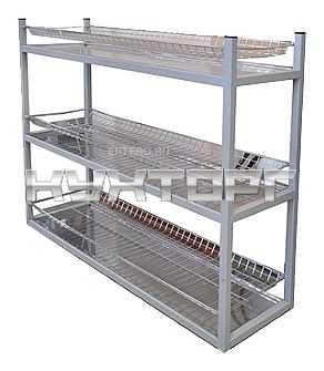 полки - для посуды; 3 полки; Для тарелок; макс. загрузка на полку - 50 кг; каркас - нерж. сталь; полки - хромированная |