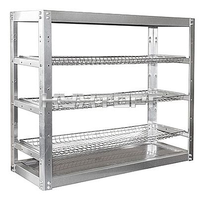 полки - для посуды; 3 полки; Для тарелок; макс. загрузка на полку - 50 кг; каркас - нерж. сталь; полки - хромированная |