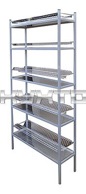 полки - для посуды; 3 полки; Для тарелок; макс. загрузка на полку - 50 кг; каркас - металл; полки - хромированная сталь; |