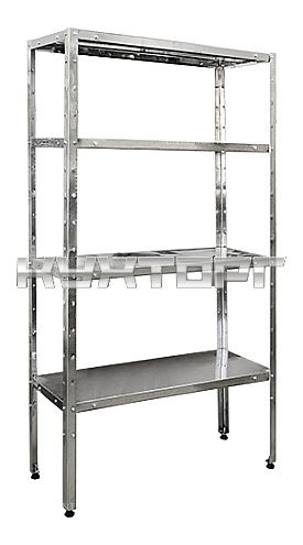 полки - сплошные; 4 полки; макс. загрузка на полку - 50 кг; каркас - оцинкованная сталь; полки - нерж. сталь; ширина - |