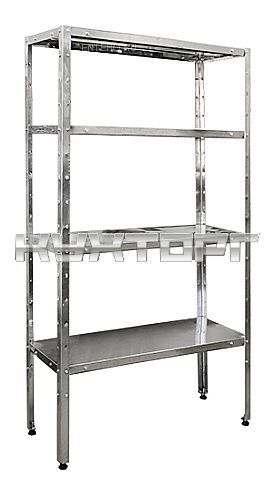 полки - сплошные; 4 полки; макс. загрузка на полку - 50 кг; каркас - оцинкованная сталь; полки - нерж. сталь; ширина - |