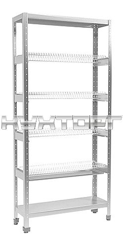 полки - для посуды; 5 полок; Для тарелок; макс. загрузка на полку - 50 кг; каркас - нерж. сталь; полки - хромированная |