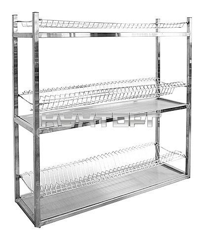 полки - для посуды; 3 полки; Для тарелок; макс. загрузка на полку - 50 кг; каркас - нерж. сталь; полки - хромированная |