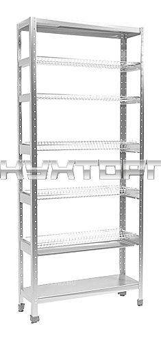 полки - для посуды; 6 полок; Для тарелок; макс. загрузка на полку - 50 кг; каркас - нерж. сталь; полки - хромированная |