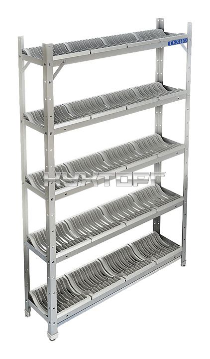 полки - для посуды; 5 полок; Для тарелок; макс. загрузка на полку - 80 кг; каркас - окрашенная сталь; полки - нерж. |