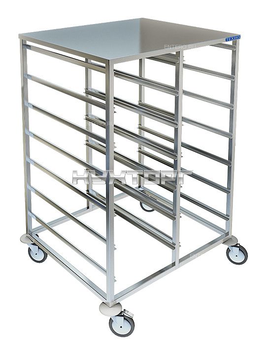 Тележка для гастроёмкостей Техно-ТТ ТП-376/1 предназначена для транспортировки, хранения сырья и готовых пищевых продуктов на предприятиях общественного питания и торговли. Модель оснащена столешницей и 4 колесами, 2 из которых с тормозными устройствами. Сварной каркас и столешница выполнены из нержавеющей стали AISI 304.