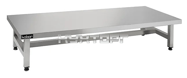 Подтоварник Кобор ПТП-50/50 служит для временного складирования кухонного инвентаря и продуктов питания. Столешница выполнена из нержавеющей стали aisi 430 с усилением ОСП, каркас из нержавеющей квадратной трубы 40х40 мм. Ножки регулируются по высоте, позволяя избежать наклона рабочей поверхности. Изделие доставляется в разобранном виде для облегчения транспортировки.
